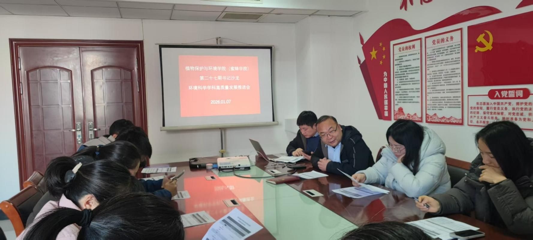 2026年1月7日上午,植物保护与环境学院召开第二十七期“书记沙龙”,专题部署环境科学学科高质量发展。学院院长刘润强、副院长王国昌、环境科学专业全体教师参加了会议。