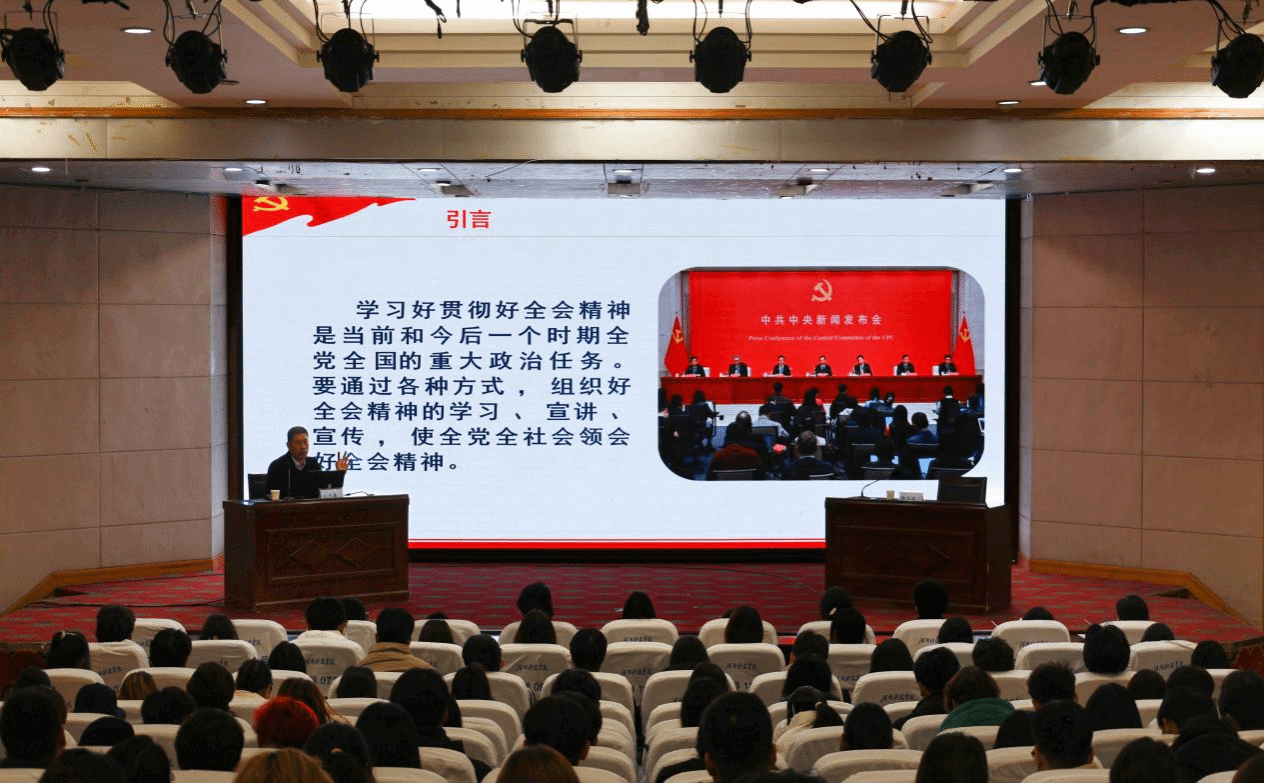 11月18日,校团委在图教201报告厅举办党的二十届四中全会精神专题学习报告会,全校2025年“青马工程”培训班学员和2025级团支书等200余人参加会议。报告会由校团委负责人主持。