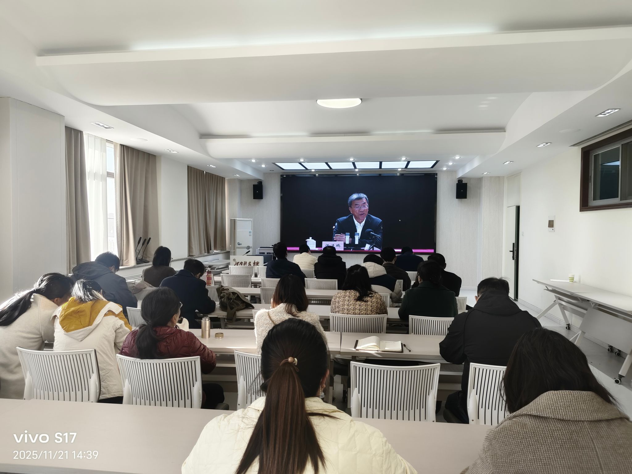 11月21日下午,马克思主义学院在0号楼809会议室组织全体思政课专兼职教师,集中收看“周末理论大讲堂”第164讲,专题学习教育部部长怀进鹏关于党的二十届四中全会精神的宣讲报告。