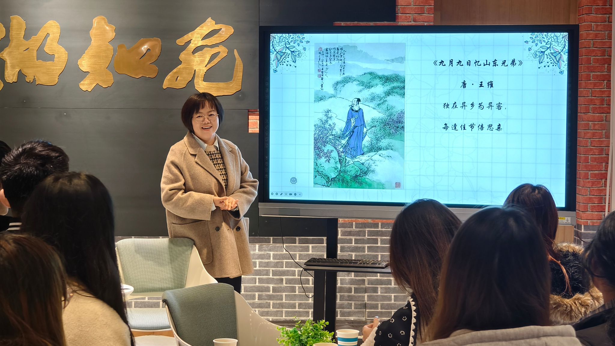 在杨老师亲手培育的金银花茶氤氲开的袅袅清香里,活动缓缓拉开了帷幕。恰逢重阳佳节,杨老师以古诗中的茱萸为引,巧妙结合动画片《葫芦娃》和名著《红楼梦》中的故事内容,带领同学们在轻松愉快的氛围中感知中国草药文化的悠久历史。随后,杨老师通过屠呦呦从黄花蒿中提取青蒿素并荣获诺贝尔奖的案例,深入阐释了中草药从传统药用到现代基因研究的发展脉络,生动展现了中华本草学“传承不泥古、创新不离宗”的守正创新精神。