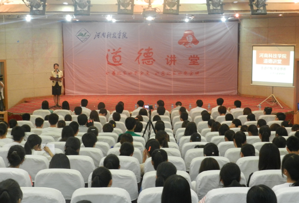 6月19日晚,由校文明办主办、经济与管理学院承办的我校第二场“道德讲堂”活动在图教201教室举行。校党委宣传部、学工部、团委、后勤管理处、经济与管理学院等相关单位负责人及经济与管理学院学生代表300余人参加了此次活动。活动由经济与管理学院党委副书记陈松玲主持。