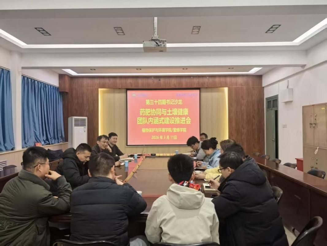 3月11日,植物保护与环境学院在实验楼E307会议室召开第三十四期“书记沙龙”,以“药肥协同与土壤健康团队内涵式建设与发展”为主题,深入探讨新形势下科研团队的可持续发展路径。院党委书记王鲁伟、副院长孔凡彬及团队全体成员参加会议。
