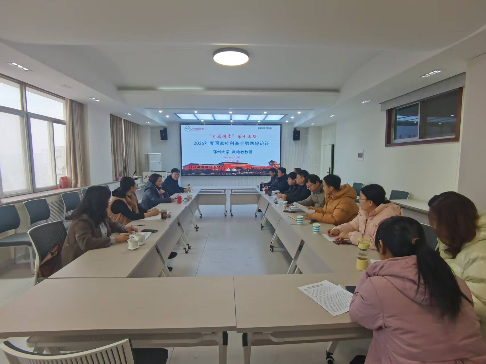 2月5日,马克思主义学院在0号楼809会议室举行2026年度国家社会科学基金申报第四轮论证会。国家社科基金通讯评审专家、郑州大学博士生导师武艳敏教授莅临学院进行现场指导,学院领导班子、基金申报人员参会。会议由副院长张希中主持。